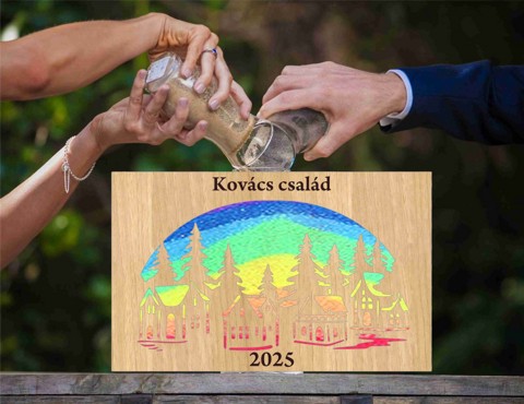 Ha igazán különleges karácsonyi élményt keresel, a személyre szabható karácsonyi homoköntés és homokkép készítés tökéletes választás. A gyönyörű, karácsonyi mintás fa doboz natúr fa–plexi kombinációval örök emlékké válik. A homok összeöntése meghitt módon jelképezi az összetartozást, amelyet egy díszes doboz őriz meg. A csomag tartalmazza a fa dobozt és opcionálisan 2 kiöntőt, a homok külön rendelhető. Ráadásul e kedves szertartás fantasztikus emléke otthonotok díszeként élhet tovább. A tároló anyaga: fa- natúr szinű és plexi 1 db fa doboz karácsonyi mintával 16x10 cm 2 db fa téglalap alkú kiöntő 250ml/db (választható felár ellenében) A homokot külön tudjátok megrendelni. Karácsonyi homoköntés – különleges, meghitt és örök emlék Ha szeretnél valami igazán eredeti, szimbolikus és egyben megható karácsonyi élményt, akkor a karácsonyi homoköntés szertartása tökéletes választás. A gyönyörű, karácsonyi mintákkal díszített, személyre szabható fa doboz olyan emléktárgy, amely egy életen át őrzi a közösen átélt pillanatokat. A homok összeöntése a család egységét, szeretetét és összetartozását fejezi ki, amelyet ez a stílusos fa doboz zár magába. Egyedi, megszemélyesíthető fa doboz A natúr fa és a tiszta plexi kombinációja modern, mégis meleg hangulatot teremt. A személyre szabható gravírozás lehetővé teszi, hogy nevek, dátumok vagy egy kedves üzenet is szerepeljen rajta, így igazán különleges karácsonyi ajándékká vagy dekorációvá válik. A doboz mérete 16×10 cm, mely ideális a szertartás során összeöntött színes homok számára. Meghitt szertartás, amely otthoni dekorációként tovább él A homoköntés nemcsak a közös élményről szól: a végeredményként létrejövő homokkép gyönyörű dísze lehet az otthonotoknak. A színek rétegezése, az összeöntött minták és a karácsonyi motívumok együtt egy örök emléket alkotnak. A csomaghoz kérhető 2 db 250 ml-es, fából készült kiöntő is, amelyek megkönnyítik a szertartást. A homokot külön tudjátok megrendelni, így teljes mértékben testre szabhatjátok a karácsonyi homoköntés élményét. Ez a varázslatos, ünnepi szertartás nemcsak egyedi, hanem szívhez szóló ajándék is lehet szeretteitek számára. Egyedi gravírozott felirattal és részletekkel ellátott, ez a készlet .