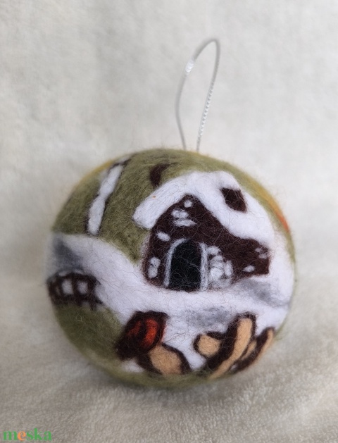 Tűnemezelt karácsonyfadísz - téli táj