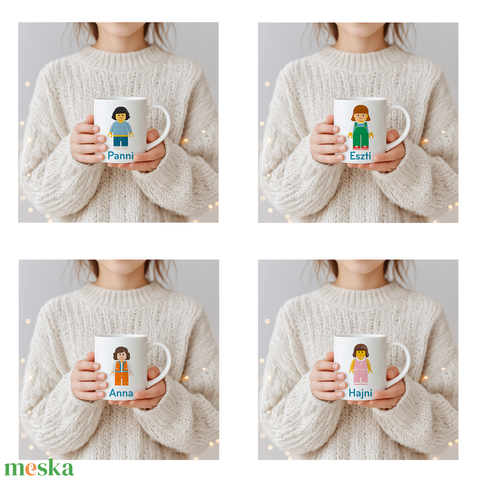 Névre szóló „Lány LEGO figura” bögre – 4 minta közül választható