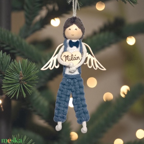 Névre szóló karácsonyfadísz – személyre szabható makramé fiú angyal