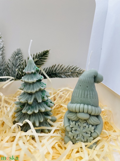 Zöld Manó és Csillámos Fenyőfa Gyertyaszett