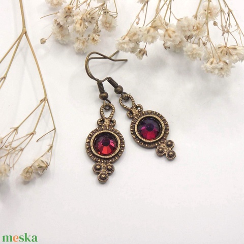 Narancsos-bíbor színű Preciosa kristályokkal készült antik bronz fülbevaló, akár szettben is, nyaklánccal