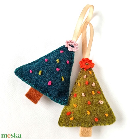 Gyapjúfilc karácsonyfadísz, ajándékkísérő, 2 db sötét és világos zöld