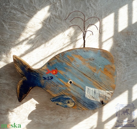 Prüszkölő Bálna - Rusztikus Fatábla, Ajándék ötlet, Gyerekszoba - Egyedi Falidísz, Bálna