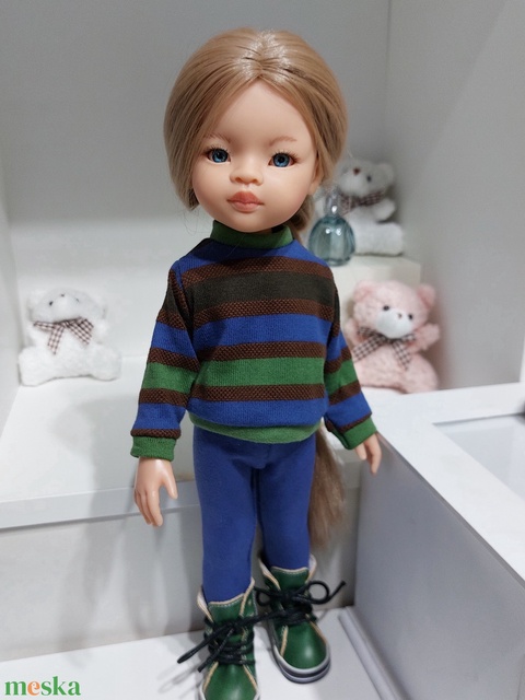 Paola Reina kék-zöld-barna csíkos hosszú ujjú pulcsis szett