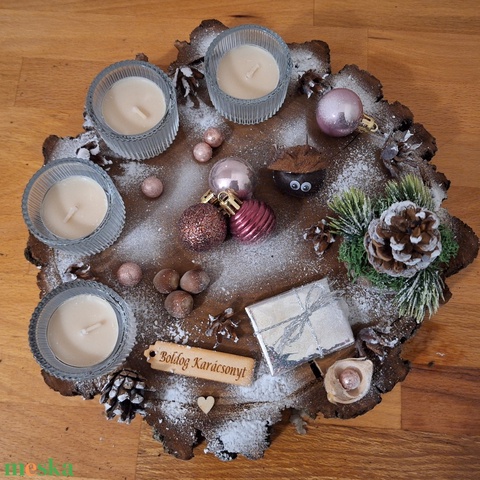 Adventi koszorú, cserélhető mécsesekkel, vanília illatú mécsesekkel