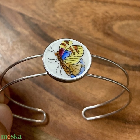 Mentett Herendi darabok - porcelán pillangós nemesacél karperec - állítható