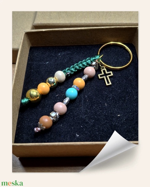 - Anyaga: kulcstartó karika, zsinór, gyöngyök