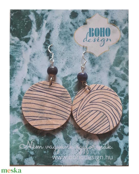Tenger hullámai BOHOdesign fülbevaló, 4 cm az átmérője. Kerámia gyönggyel.