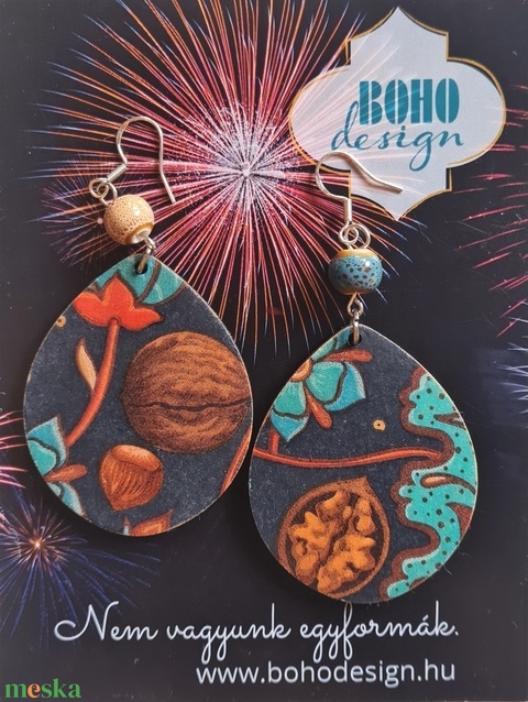 BOHOdesign aszimmetrikus fülbevaló - Dió, mogyoró
