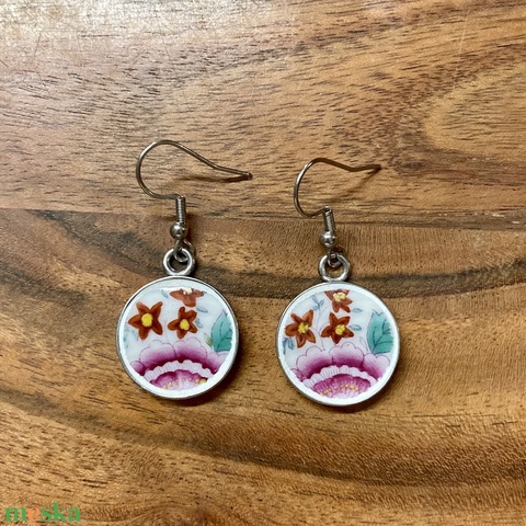 Mentett Herendi darabok - porcelán fülbevaló - nemesacél lógós