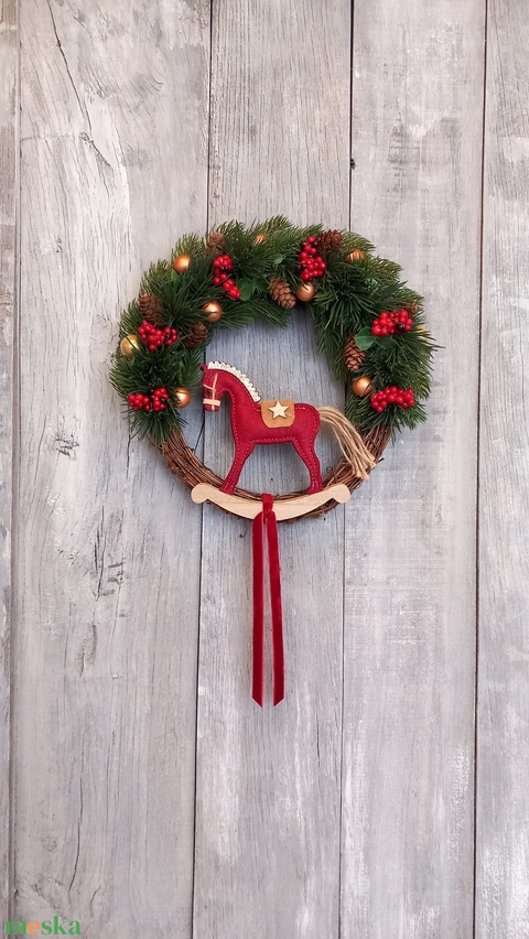 Karácsonyi Hintalovacska - Karácsonyi Kopogtató/Téli Kopogtató /Téli Ajtódísz/Karácsonyi Ajtódísz/Falidísz/