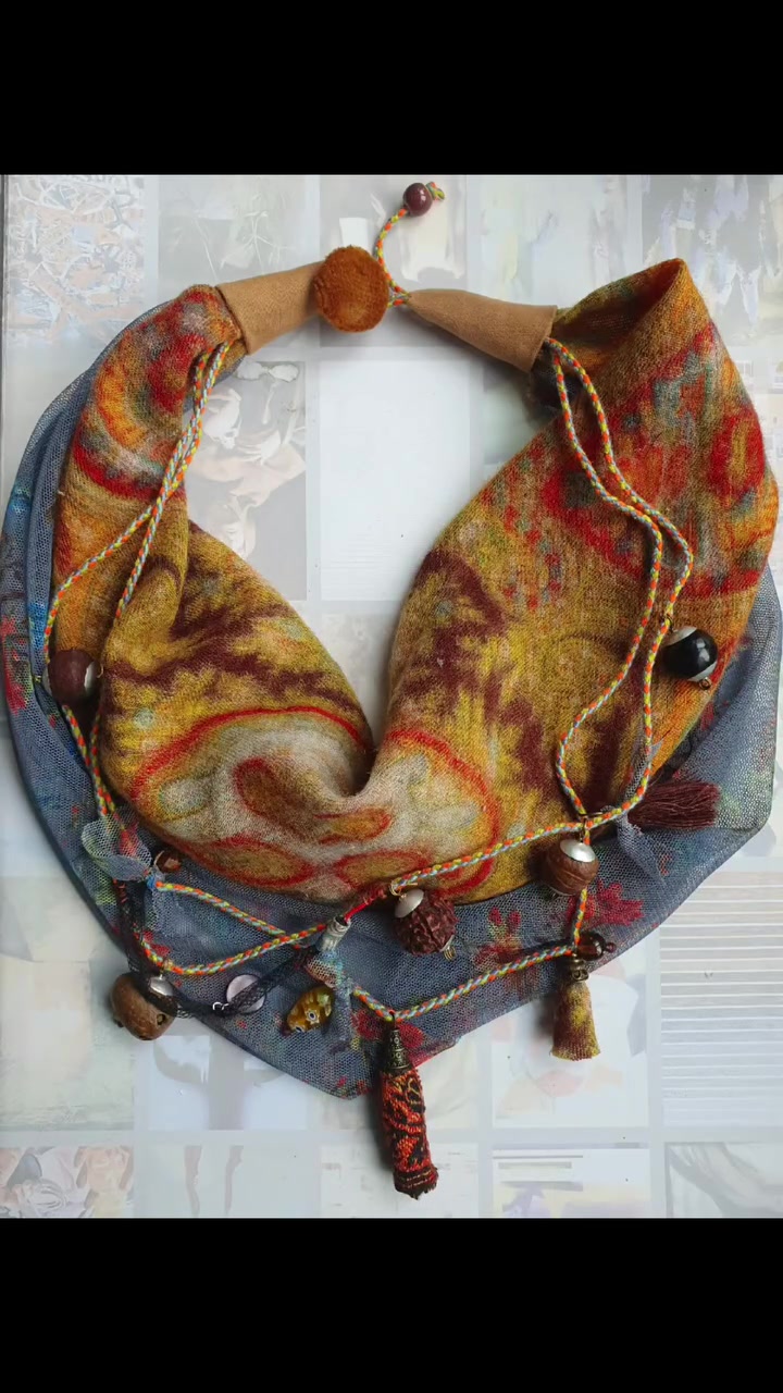 - Anyaga: pamut textil, tüll, gomb, üveggyöngyök, bojt, zsinórok, termések