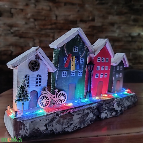 Karácsonyi utcakép színes LED világítással