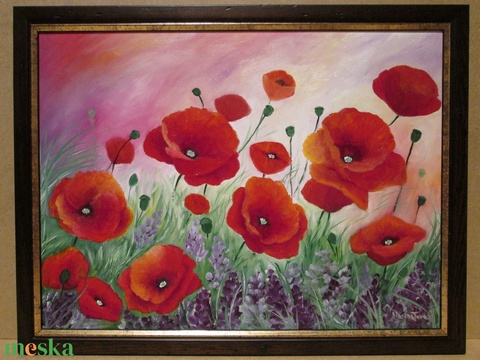 Pipacsok a szélben , Olajfestmény keretben