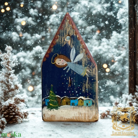 Angyalpor - Rusztikus Festett Fatábla - Falra akasztható - Ajándék ötlet - Angyal, Gyerekszoba, Karácsony