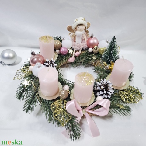 Karácsonyi adventi angyalka koszorú, asztaldísz