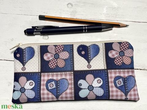 Szívecskés–virágos patchwork tolltartó - pipere - neszesszer