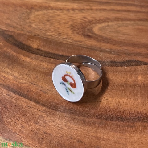 Herendi mentett darabok - nemesacél gyűrű - virágos porcelán, állítható