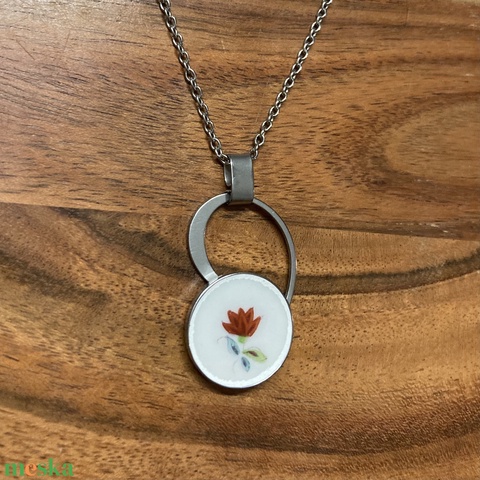 Herendi mentett darabok - nemesacél nyaklánc virágos porcelánnal