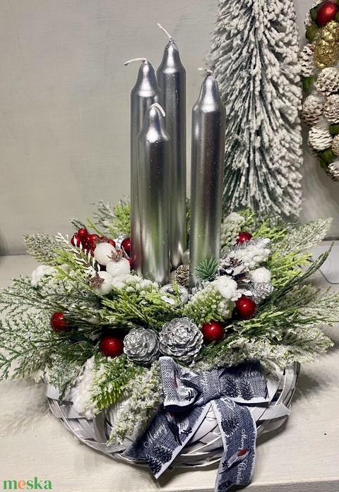 Adventi asztaldísz fonott kaspóban