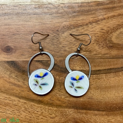 Mentett Herendi darabok - virágos porcelán fülbevaló - nemesacél lógós
