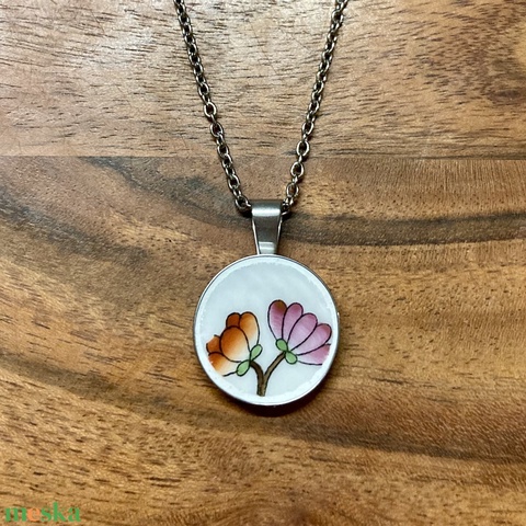 Herendi mentett darabok - nemesacél nyaklánc virágos porcelánnal