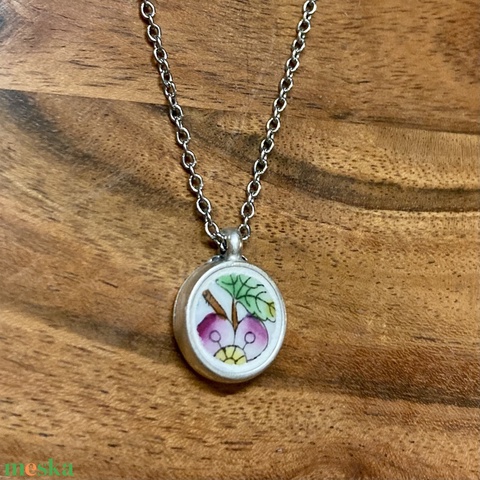 Herendi mentett darabok - pici porcelán nyaklánc - nemesacél lánccal