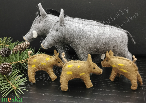 VADDISZNÓ-CSALÁD 5 DB/SZETT VADDISZNÓ VADKAN ANYAKOCA VADMALAC TERMÉSZETES ANYAG GYAPJÚFILC GYAPJÚ NEMEZ ERDEI ÁLLATOK