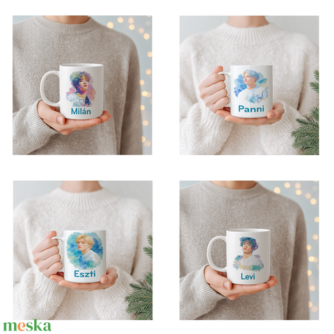 Névre szóló „Pastel K-Pop Boy – Akvarell” bögre – 4 minta közül választható