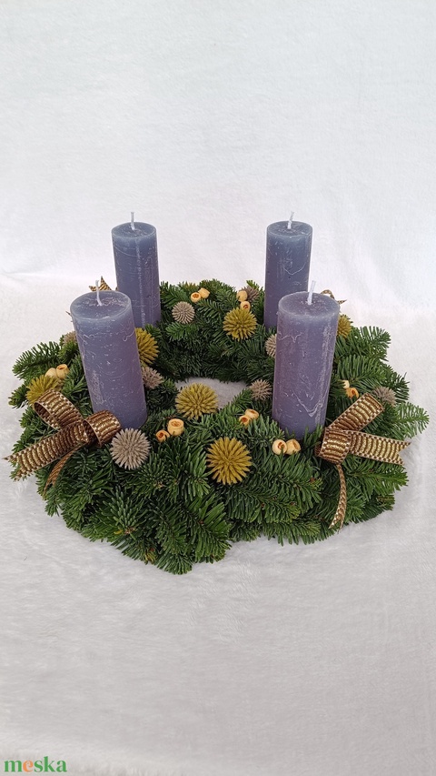 Élőfenyő adventi koszorú kék színű gyertyákkal