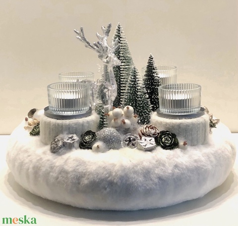 Adventi koszorú akril szarvassal, fenyőkkel és mécsesekkel