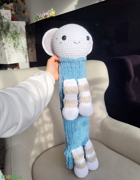 - Anyaga: puha plüss poliészter fonal, biztonsági szem, poliészter tömőanyag