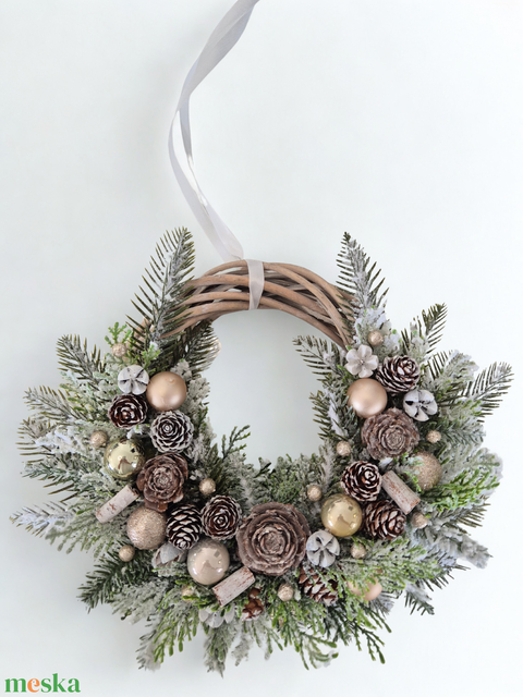 Karácsonyi kopogtató tobozokkal és fenyőágakkal – kézműves ajtódísz