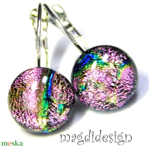 Pinkes-rózsaszín dichroic üvegékszer kapcsos fülbevaló