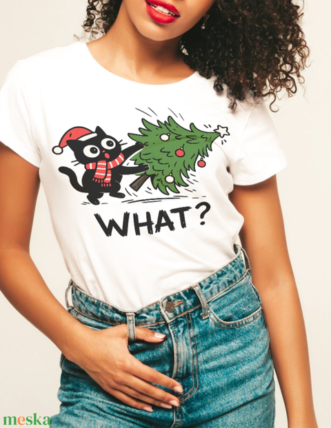 Cicás karácsonyi fehér póló női