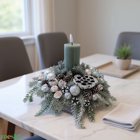 KENDEKOR természetes hatású karácsonyi asztaldísz – „Téli elegancia”