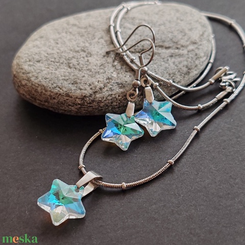 nemesacél fülbevaló alap, nemesacél nyaklánc, kristály hópihe