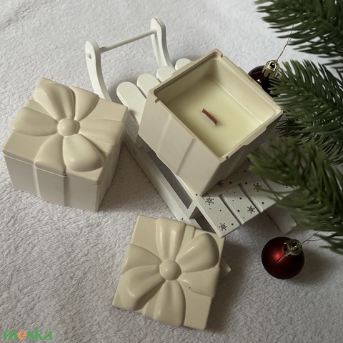 Kézműves gyertya ajándékdoboz tégelyben - fa kanóccal