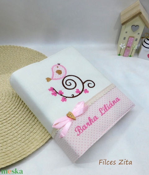 Madárkás hímzett fotóalbum - textil hímzett fényképalbum névhímzéssel