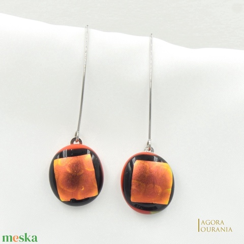 - Anyaga: narancs üveg, fekete alapon narancs és barna irizáló dichroic ékszerüveg, nemes acél fülbevaló akasztó