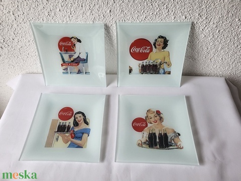 Vintage stílusú, Coca-Cola sütis tányérszett_4 db-os