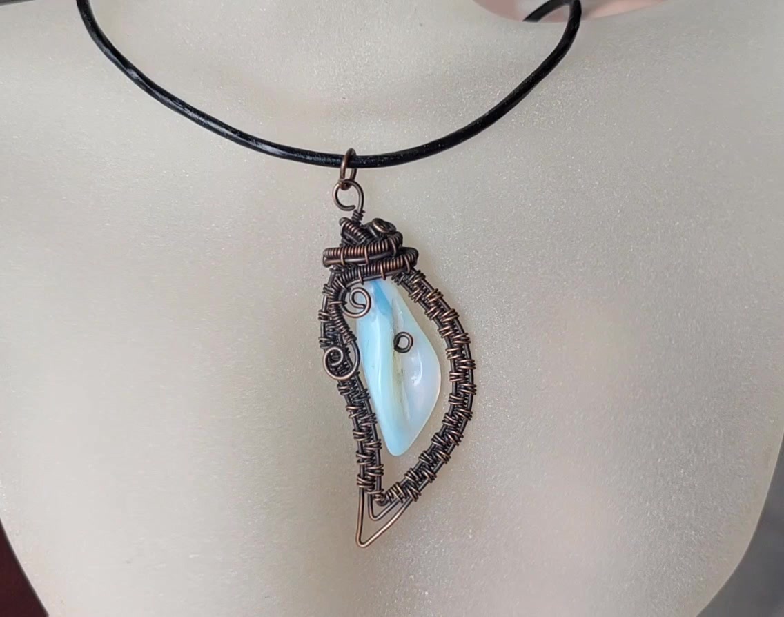 Kála - vörösréz drót nyaklánc kála alakú opalit kővel