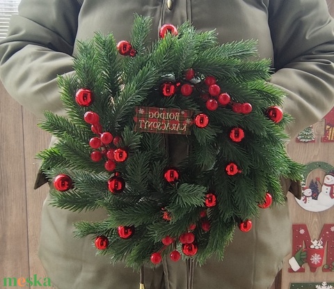 - Anyaga: 3d levelű műfenyö, dekorok, felirat