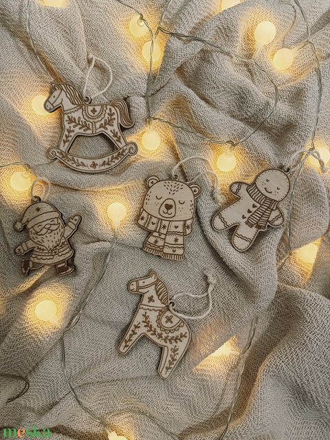 Natúr fa gravírozott karácsonyfadísz szett – 5 db