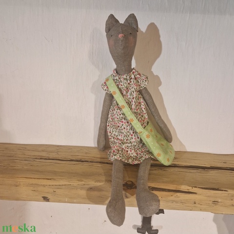 Játék textil cica táskával