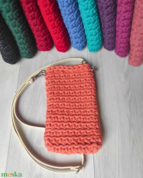 Telefontartó horgolva választható színekben – keresztpántos mobiltok