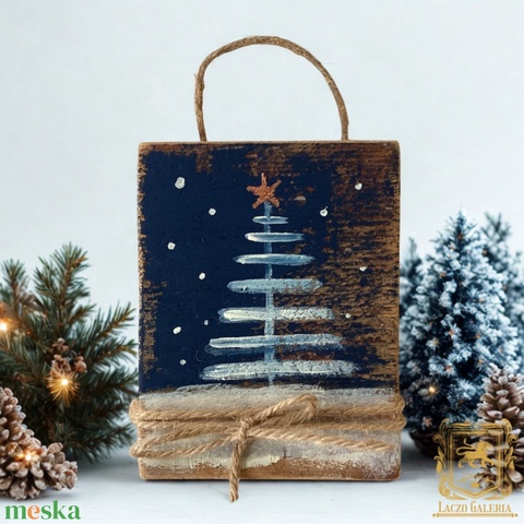 Kiskarácsony - Rusztikus Festett Fatábla - Falra akasztható - Ajándék ötlet - Karácsonyfa - Karácsony