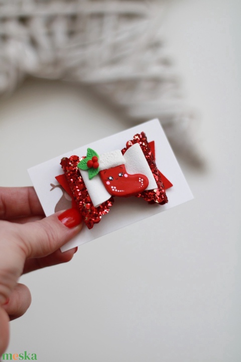 Karácsonyi csizmás hajcsat, gyerek hajcsat, hajcsat