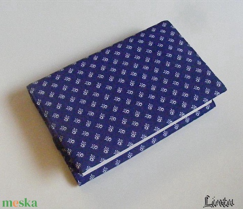Könyvborító állítható szélességgel, kékfestő jellegű anyagból